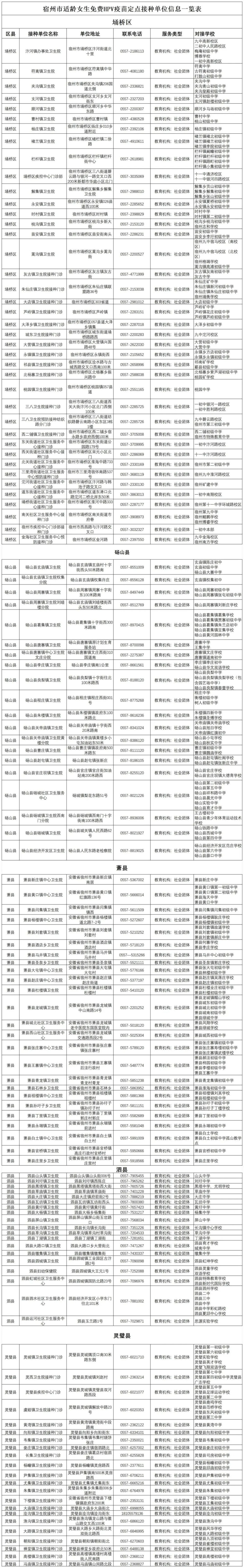 民生实事进行时:宿州市适龄女生人乳头瘤病毒(HPV)疫苗免费接种定点门诊公布!
