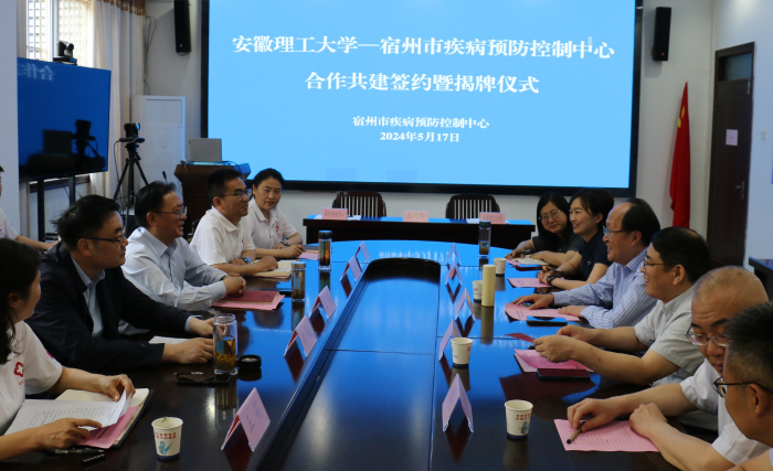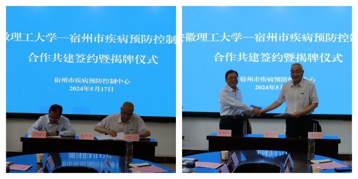 双方签署了《安徽理工大学-宿州市疾病预防控制中心附属疾病预防控制中心(非直属)共建协议》,并共同为安徽理工大学附属宿州市疾病预防控制中心揭牌。