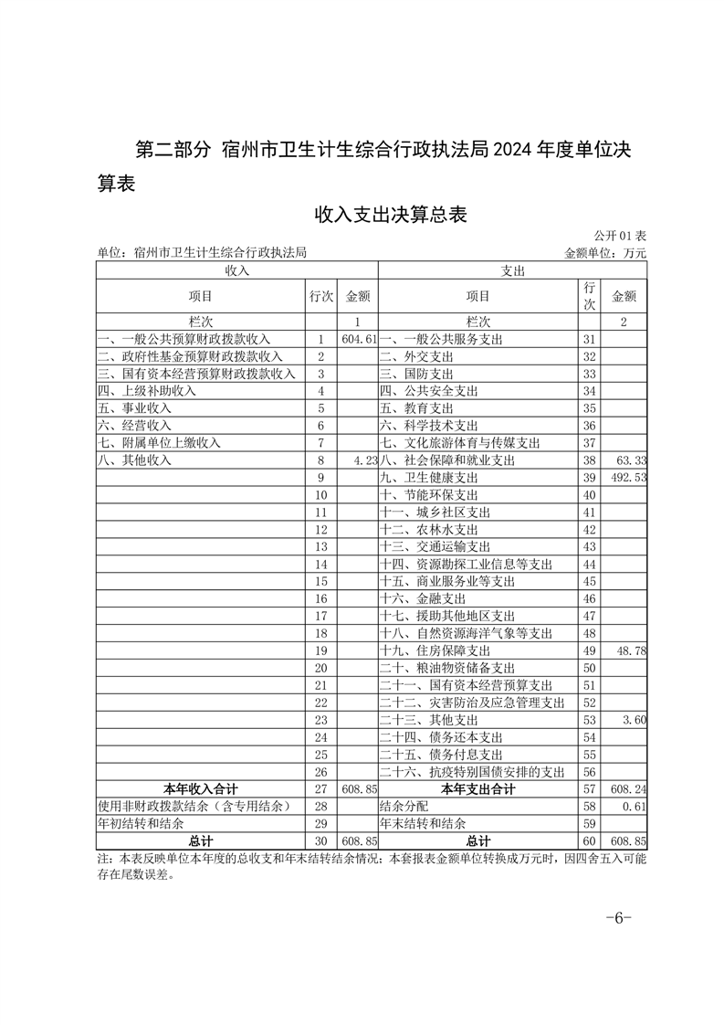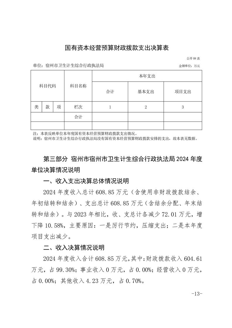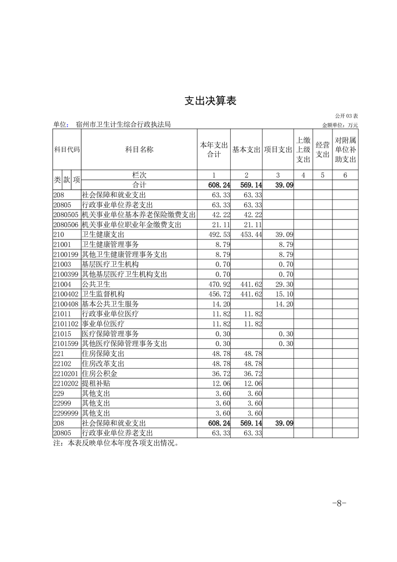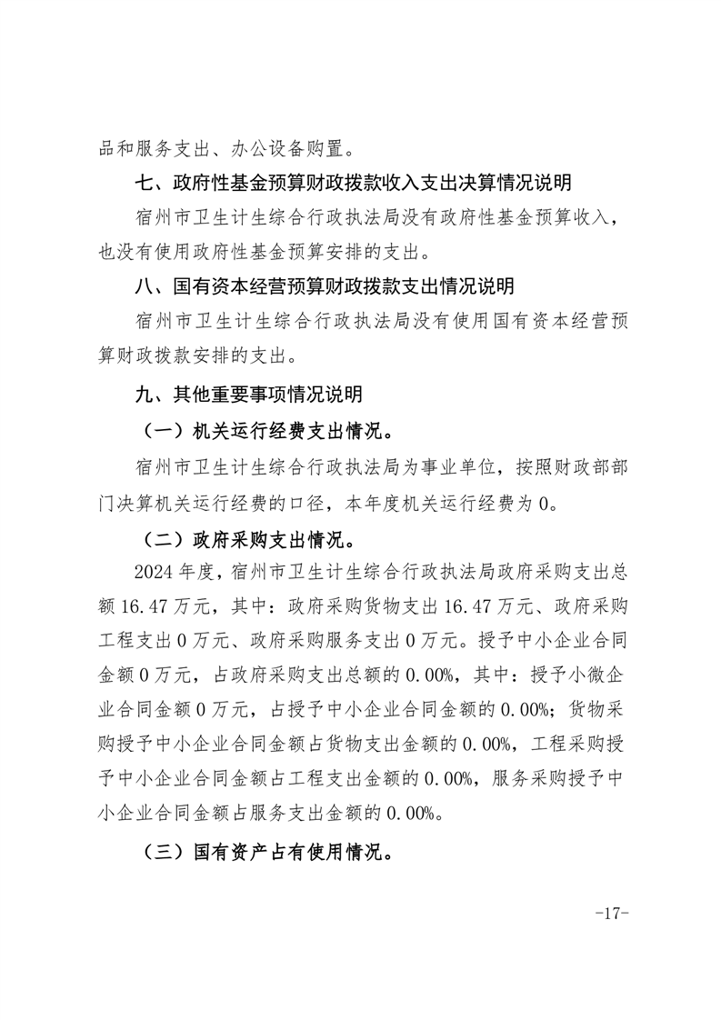 宿州市卫生计生综合行政执法局2024年度单位决算