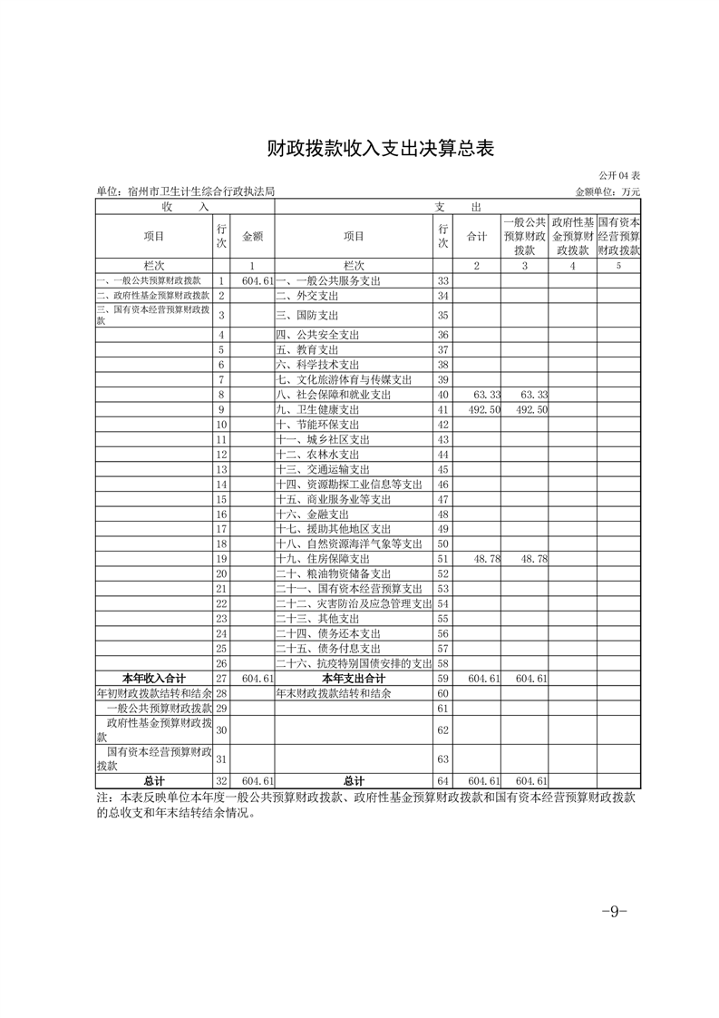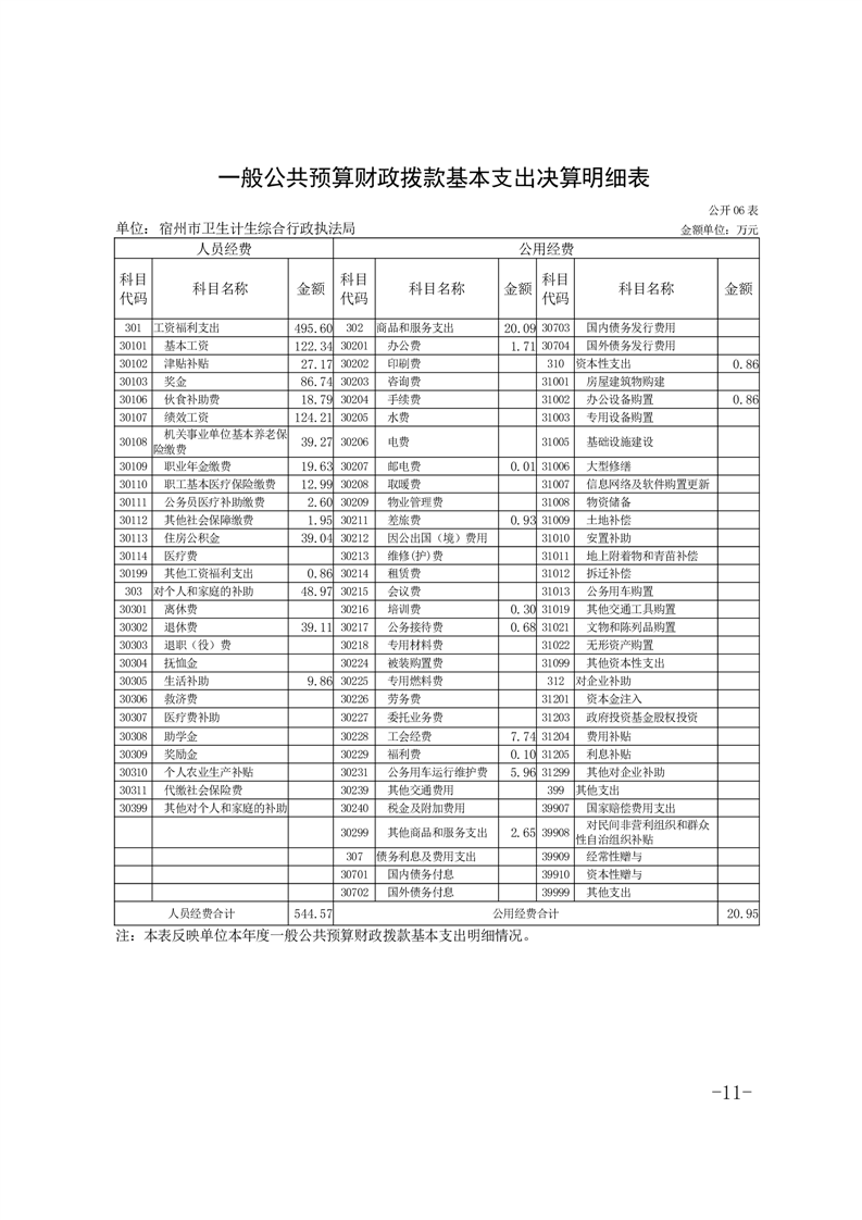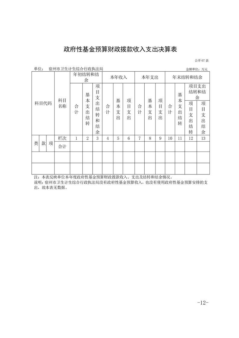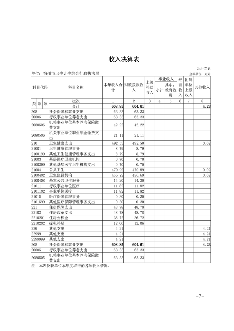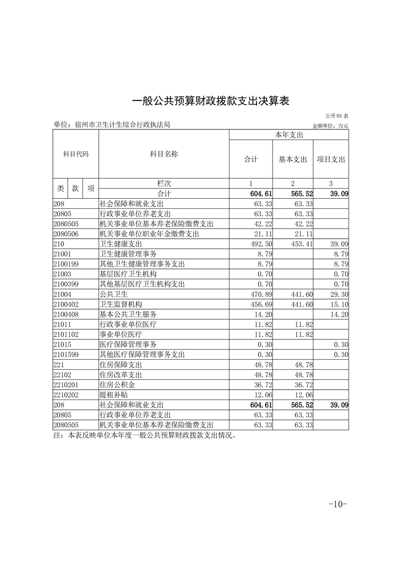 宿州市卫生计生综合行政执法局2024年度单位决算