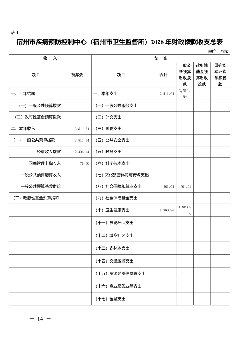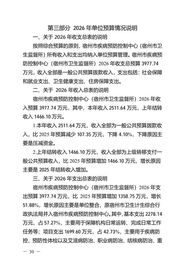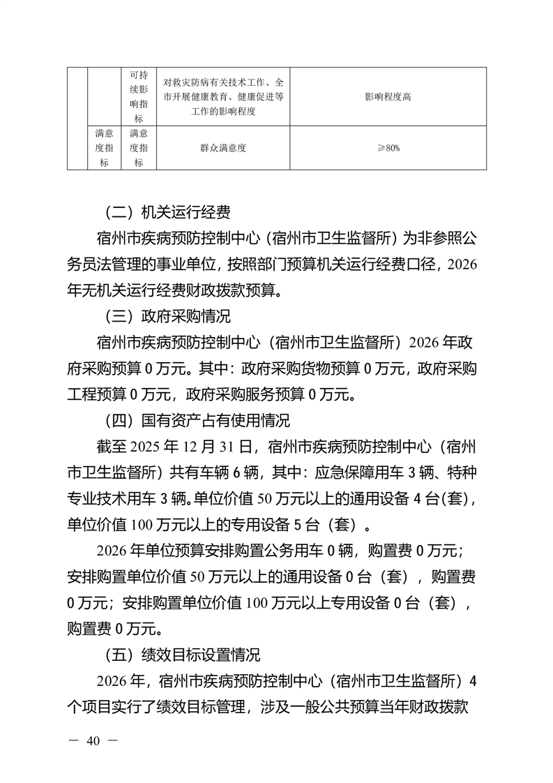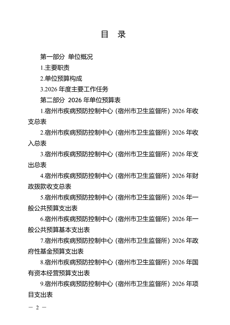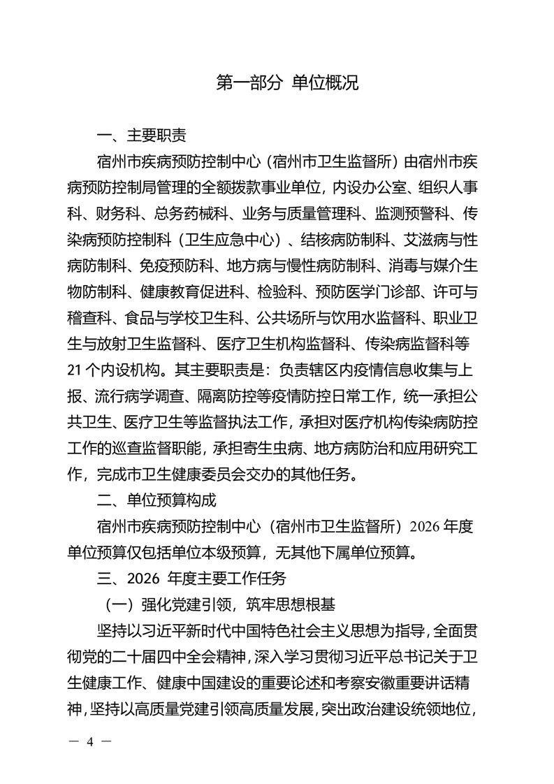 宿州市疾病预防控制中心(宿州市卫生监督所)2026 年单位预算