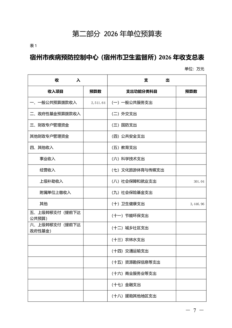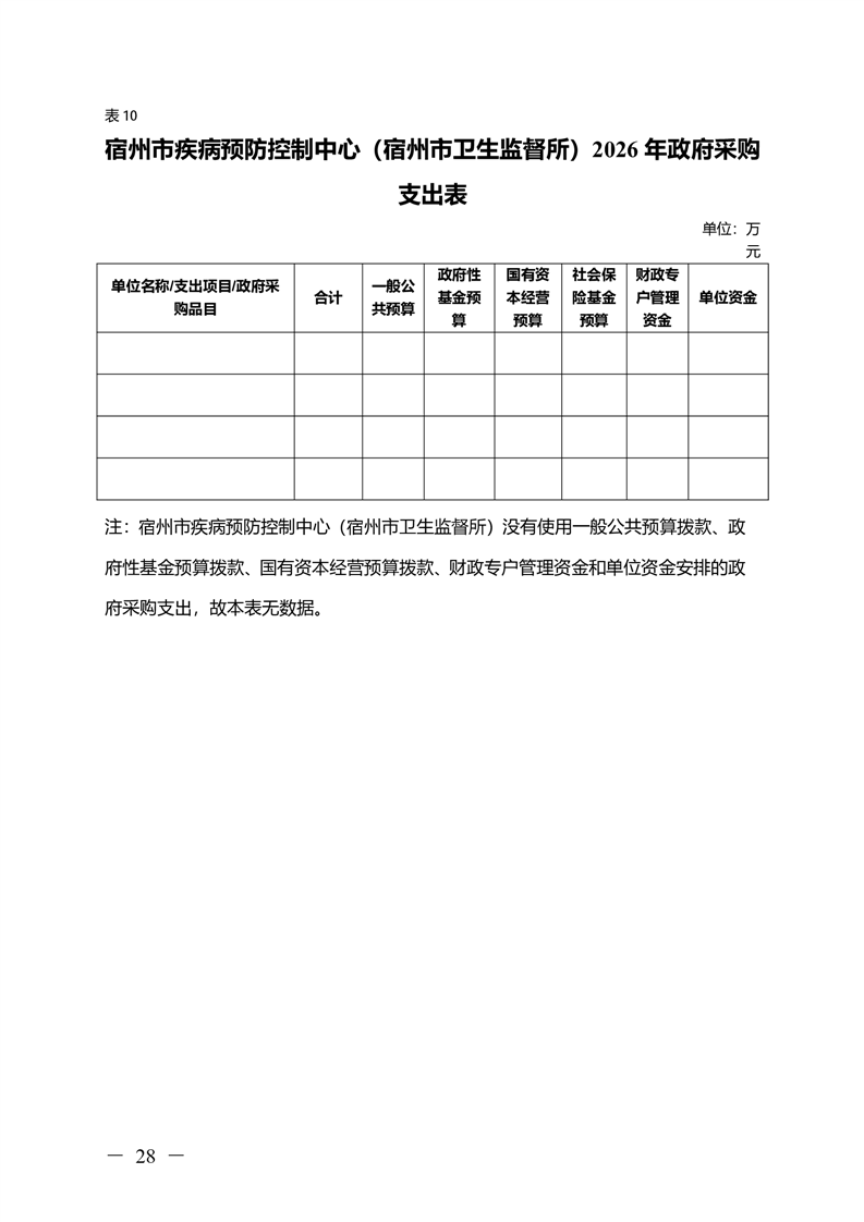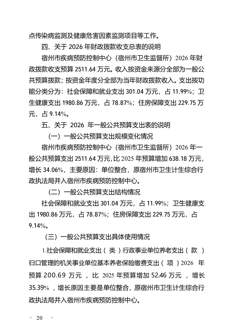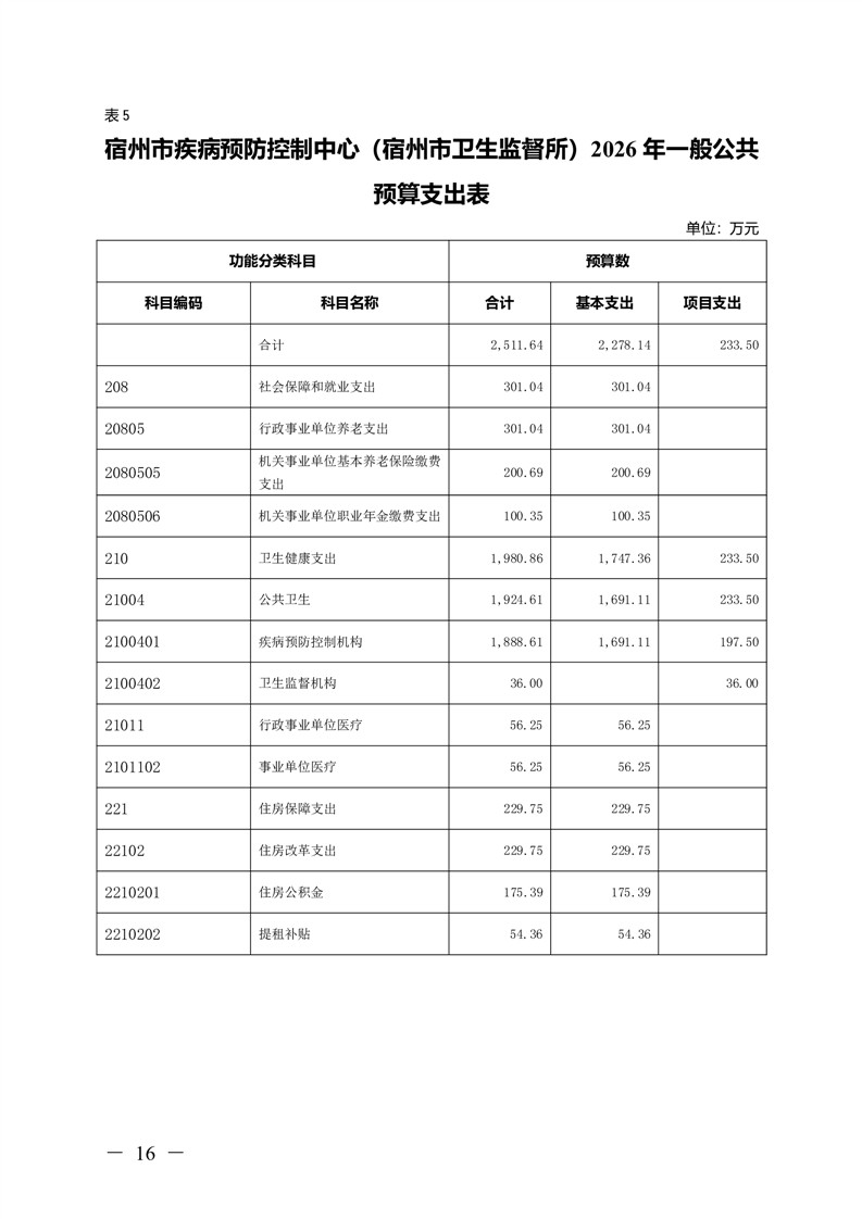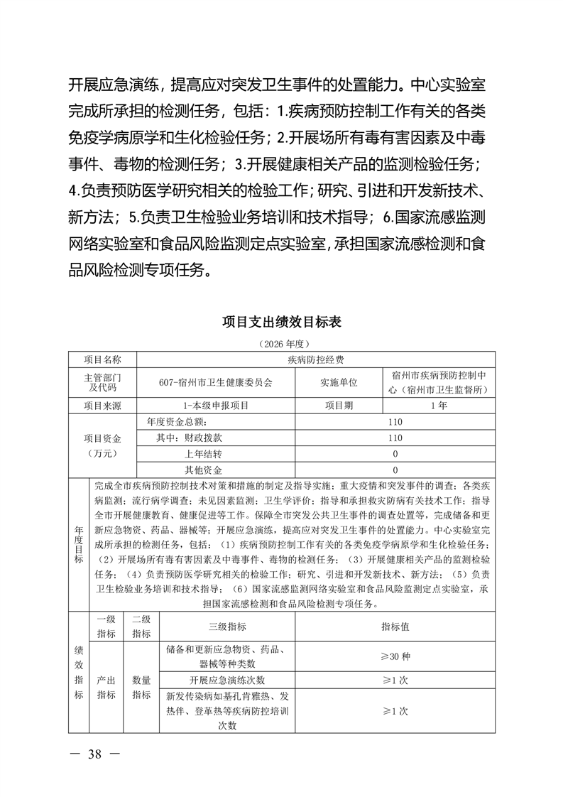 宿州市疾病预防控制中心(宿州市卫生监督所)2026 年单位预算