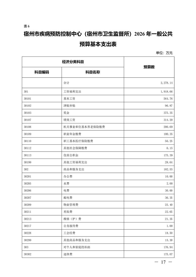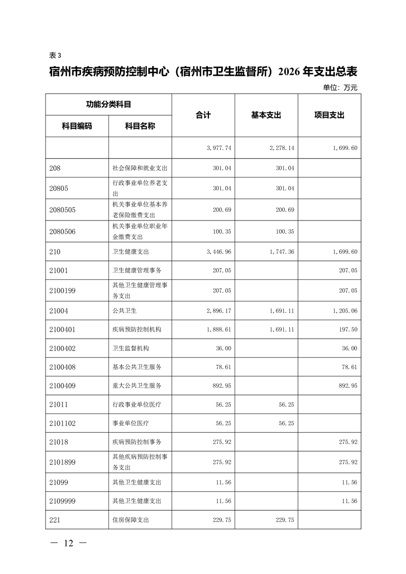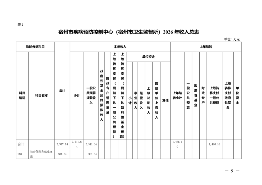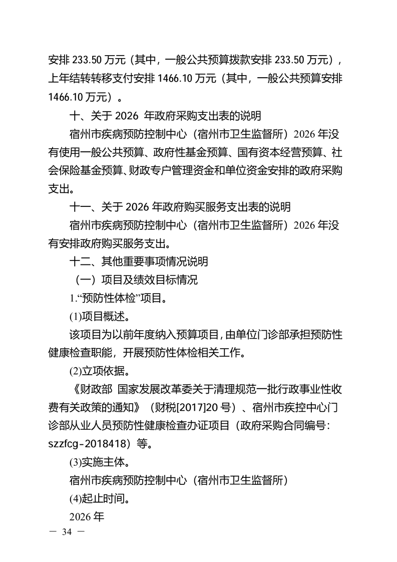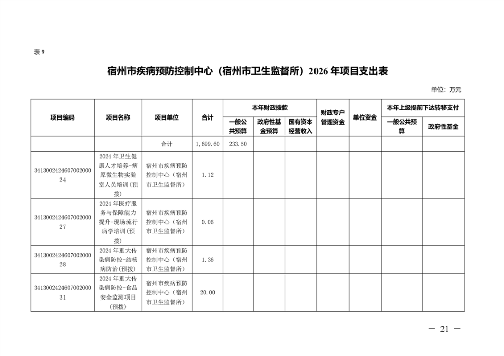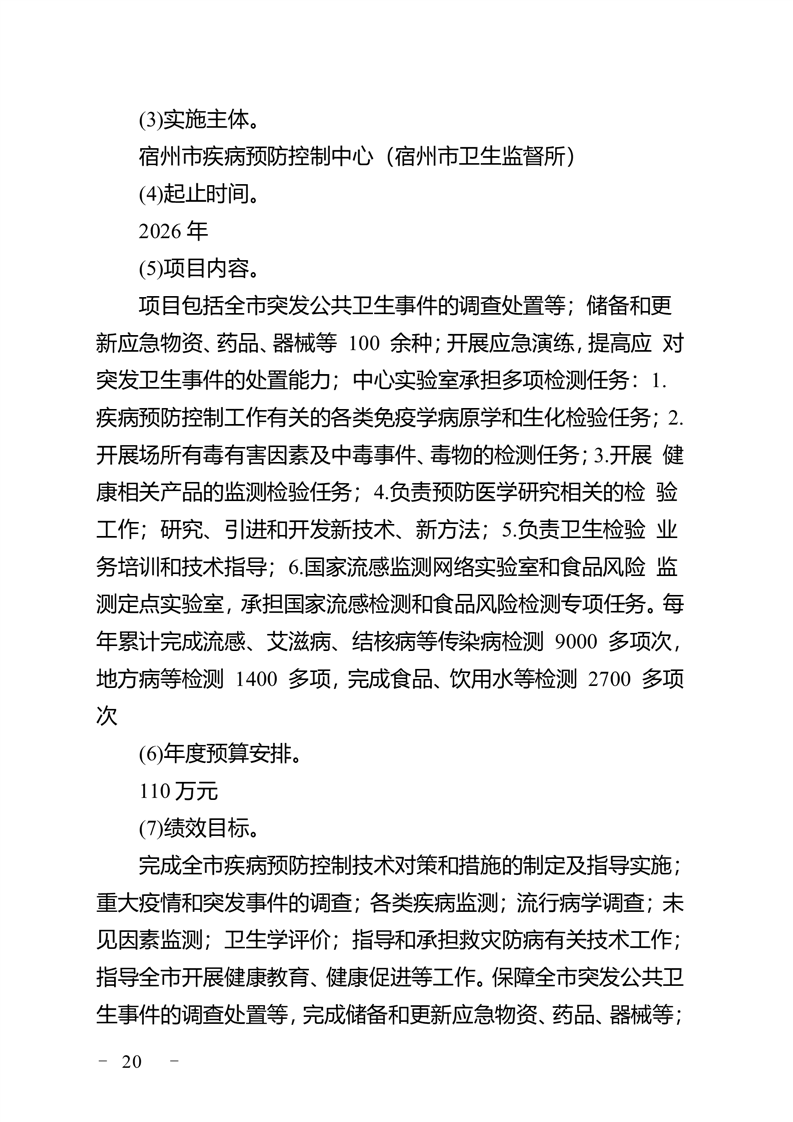 宿州市疾病预防控制中心(宿州市卫生监督所)2026 年单位预算
