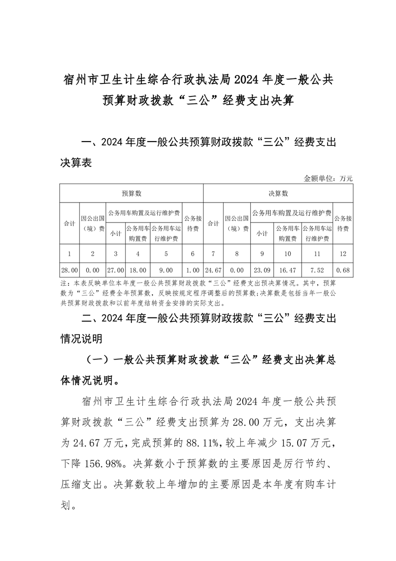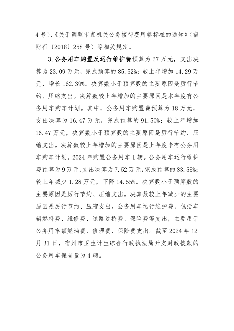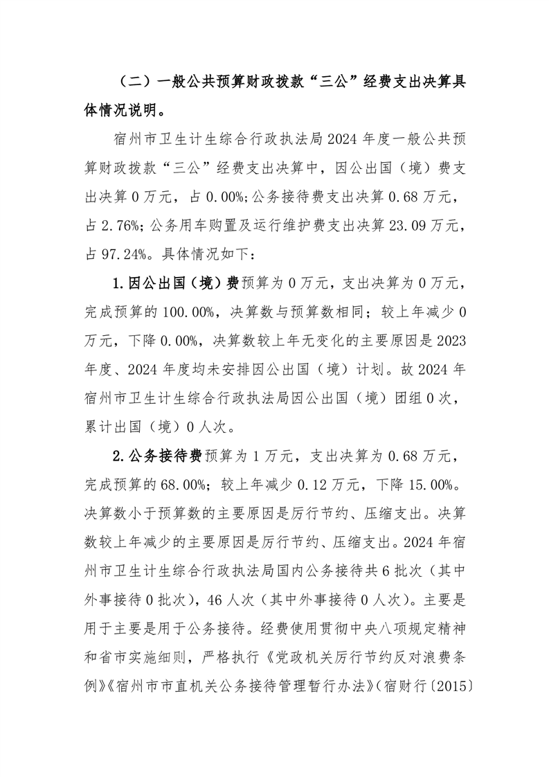 宿州市卫生计生综合行政执法局2024年度一般公共预算财政拨款“三公”经费支出决算