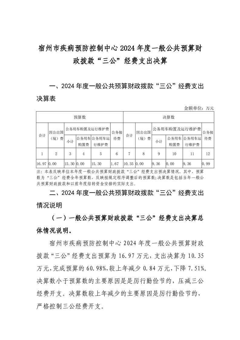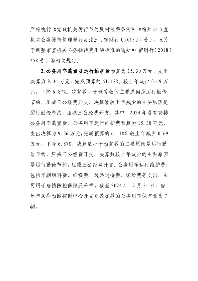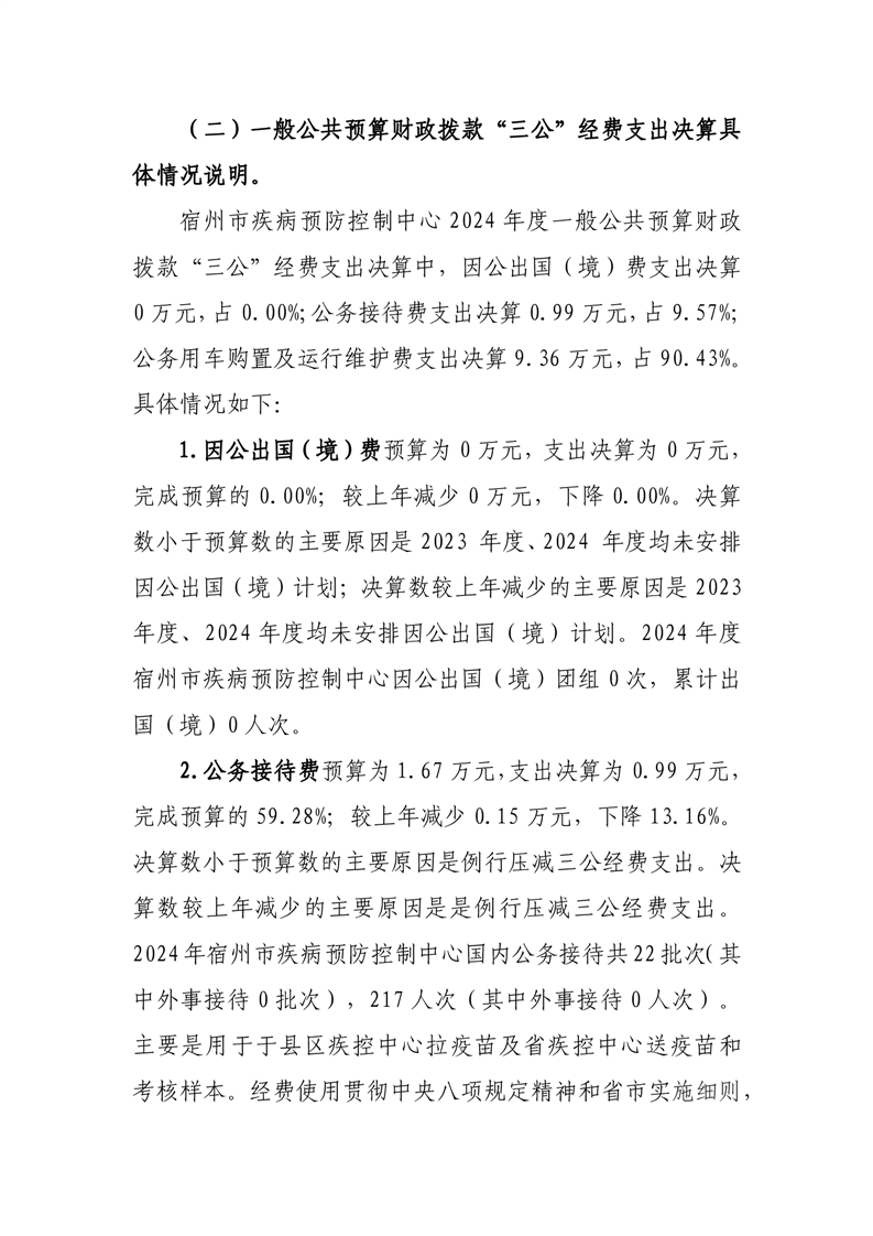 宿州市疾病预防控制中心2024年度一般公共预算财政拨款“三公”经费支出决算
